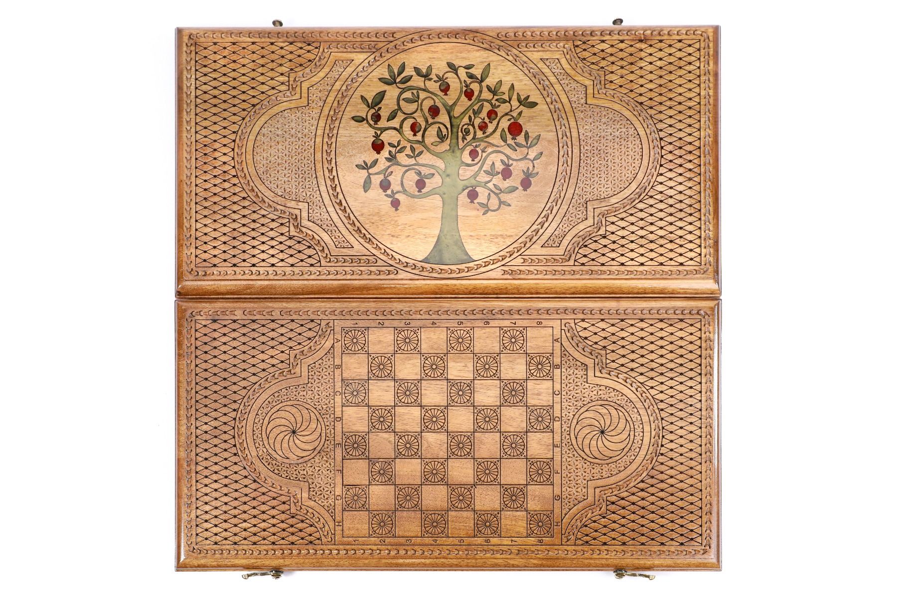 Nous vous proposons un nombre limité de ces plateaux de backgammon en bois à l'effigie d'un arbre grenadier. Nos créateurs ont déjà produit cinquante de ces pièces uniques en leur genre et ont accepté de produire un nombre supplémentaire de pièces en fonction de votre demande.