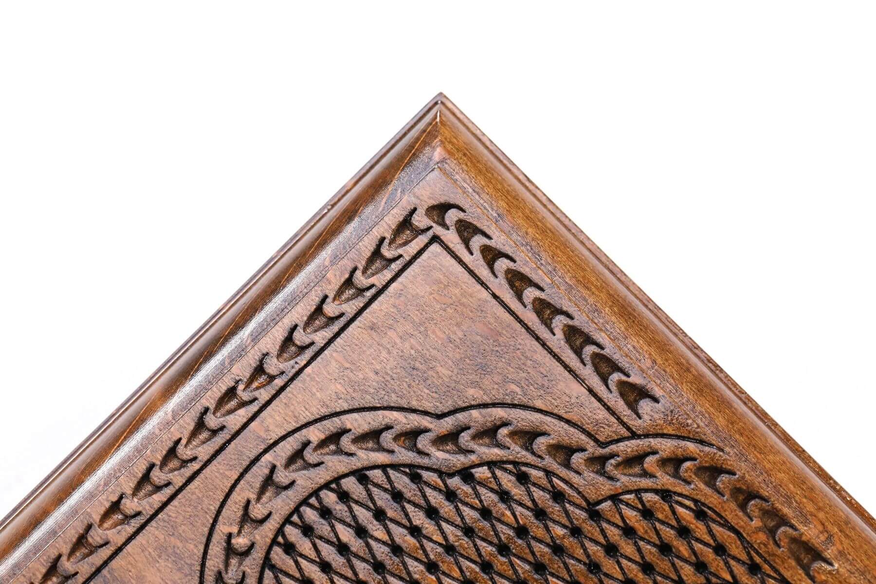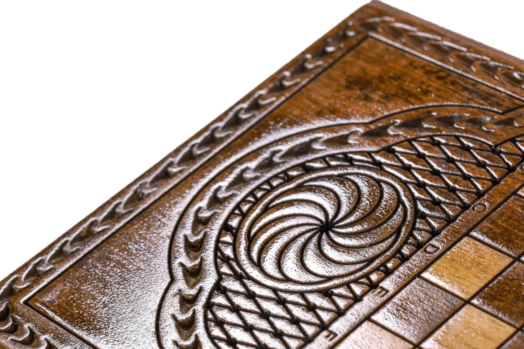 Nous vous proposons un nombre limité de ces plateaux de backgammon en bois orné. Nos créateurs ont déjà produit cinquante de ces pièces uniques en leur genre et ont accepté de produire un nombre supplémentaire de pièces en fonction de votre demande.