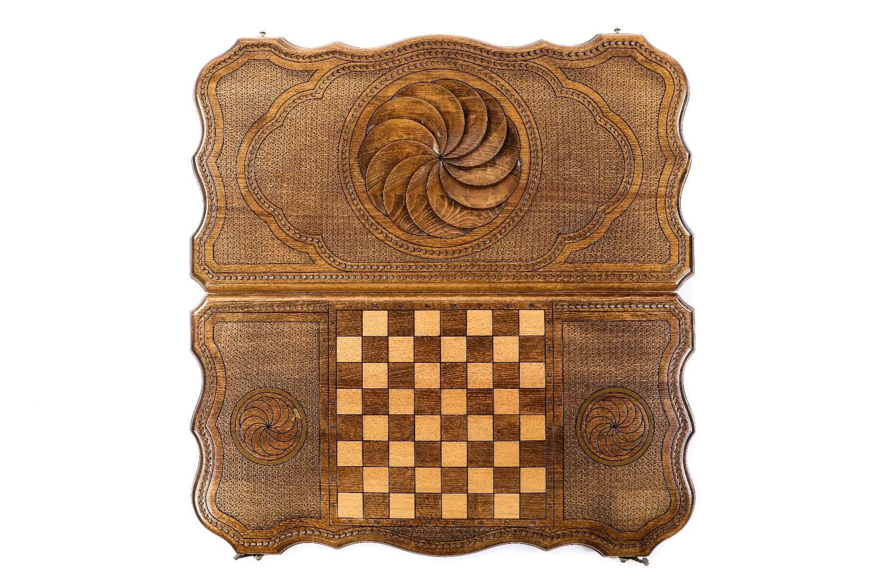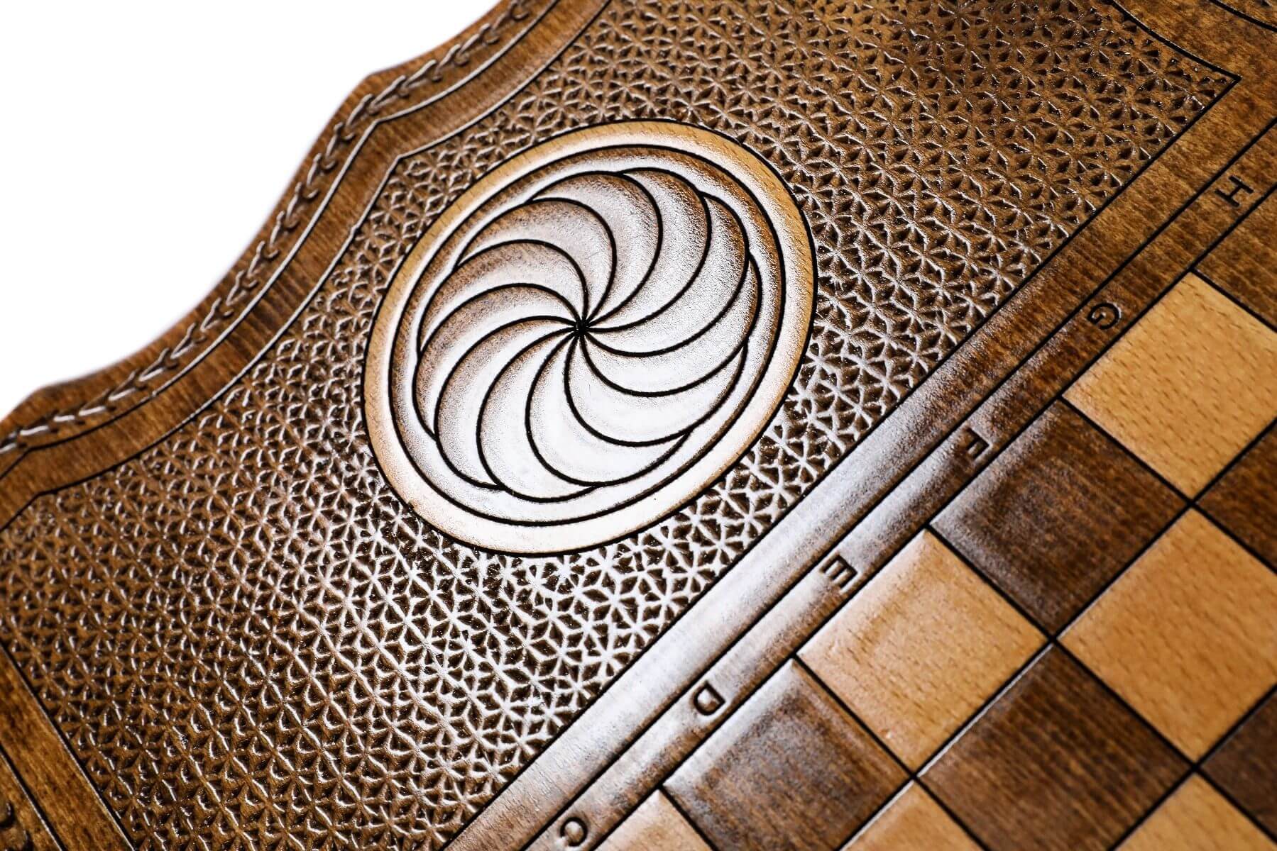 Nous vous proposons un nombre limité de ces plateaux de backgammon en bois à l'effigie d'une roue de l'éternité. Nos créateurs ont déjà produit cinquante de ces pièces uniques en leur genre et ont accepté de produire un nombre supplémentaire de pièces en fonction de votre demande.