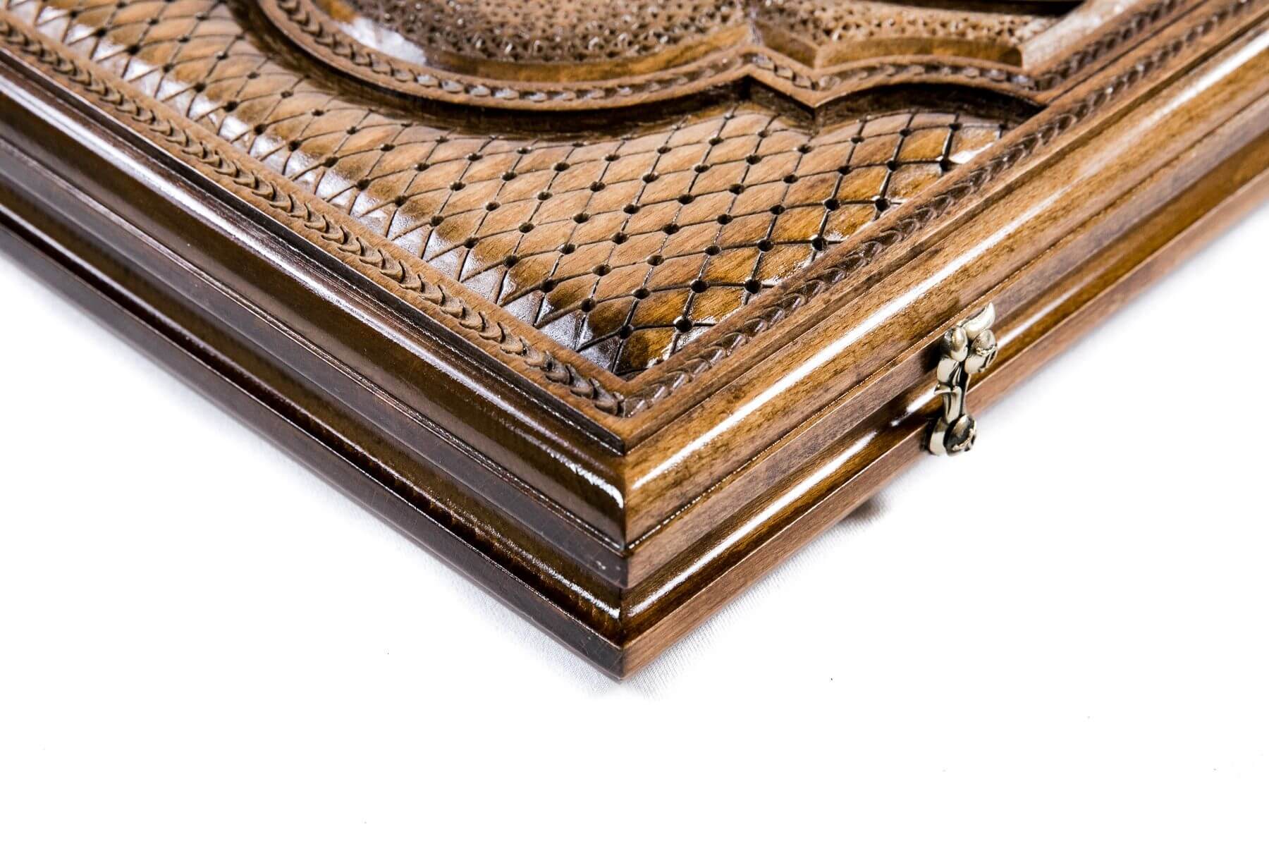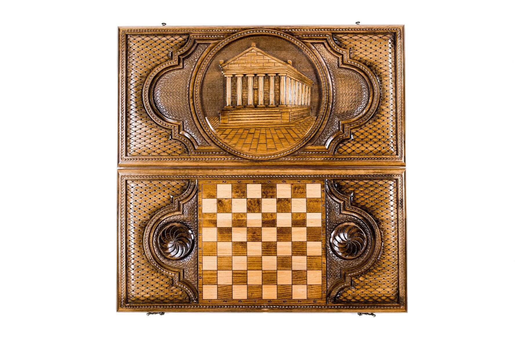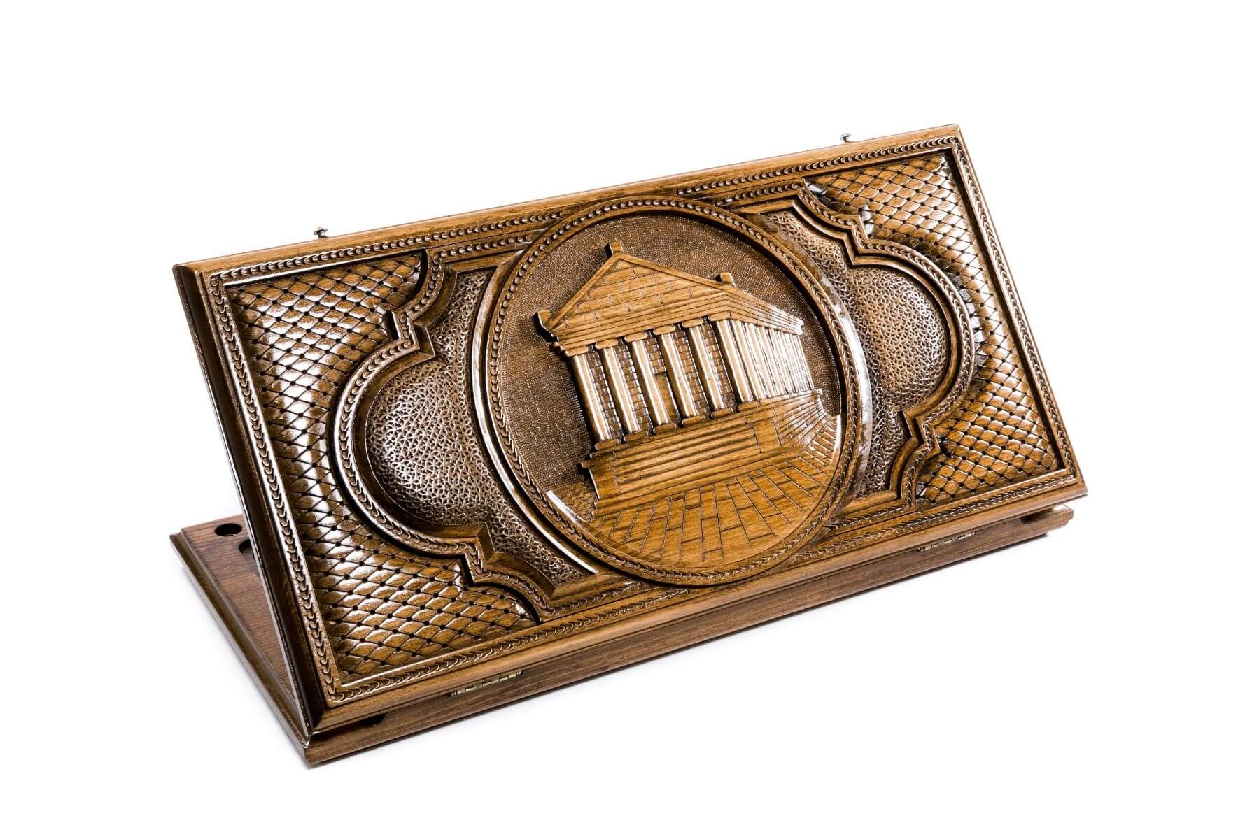 Nous vous proposons un nombre limité de ces plateaux de backgammon en bois à l'effigie du temple de Garni. Nos créateurs ont déjà produit cinquante de ces pièces uniques en leur genre et ont accepté de produire un nombre supplémentaire de pièces en fonction de votre demande.