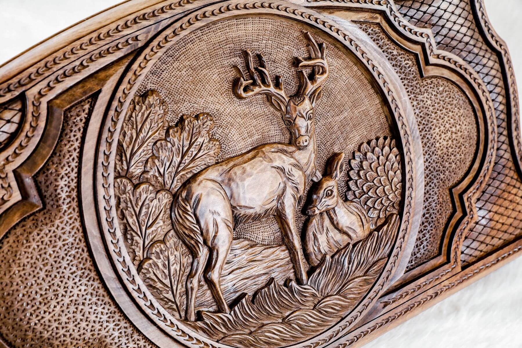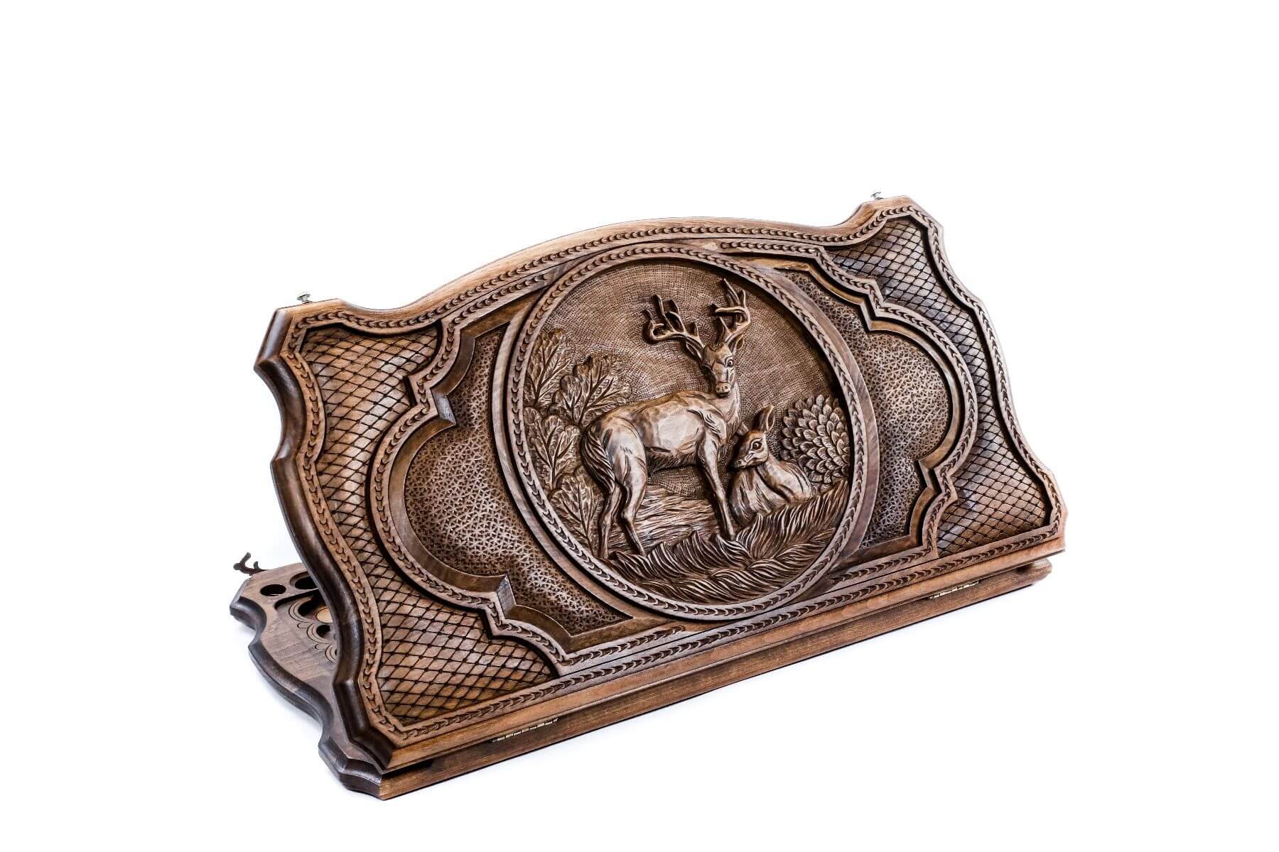 Nous vous proposons un nombre limité de ces plateaux de backgammon en bois à l'effigie d'un cerf. Nos créateurs ont déjà produit cinquante de ces pièces uniques en leur genre et ont accepté de produire un nombre supplémentaire de pièces en fonction de votre demande.