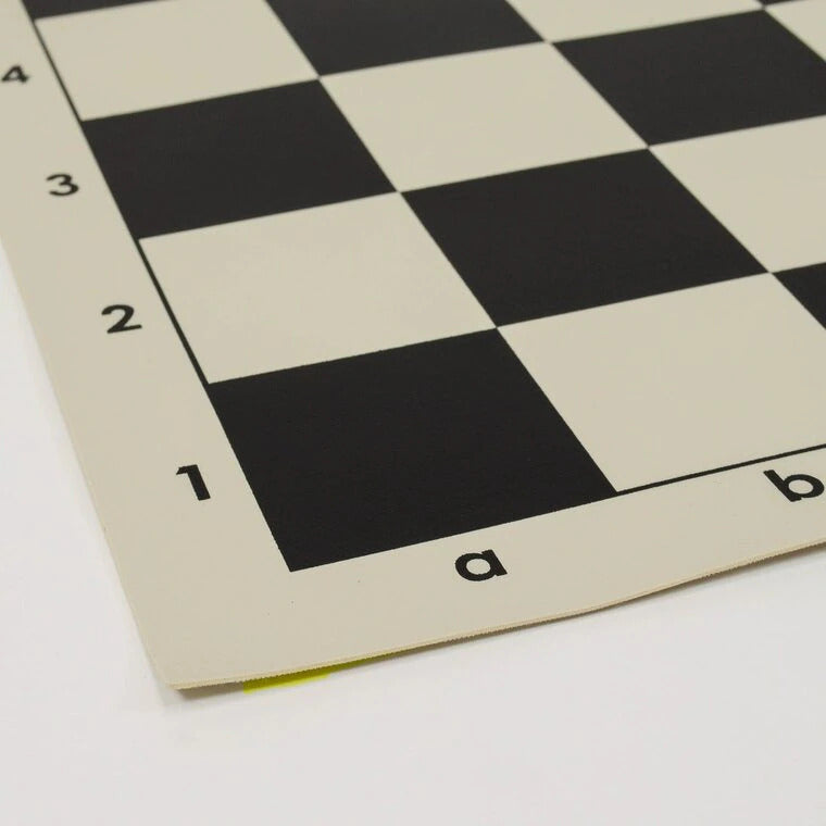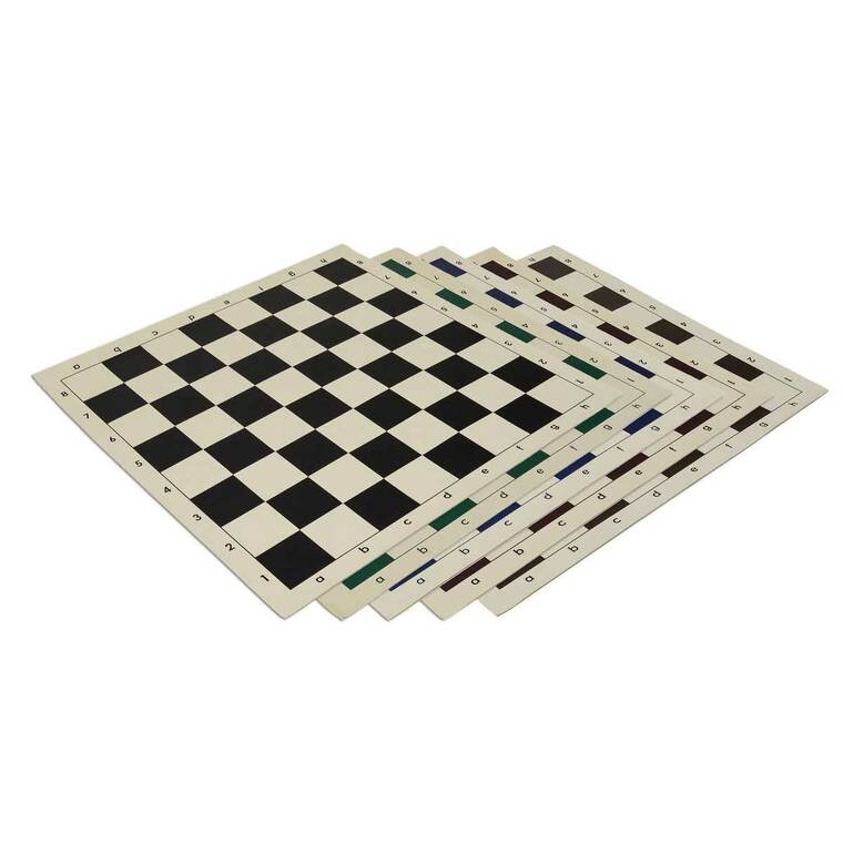 Nos échiquiers en vinyle de qualité sont les échiquiers en vinyle de la plus haute qualité disponible. Non seulement ces échiquiers peuvent s'enrouler et se dérouler facilement pour un rangement pratique, mais ils résistent également aux déchirures, aux déversements et aux abus les plus exigeants. Chaque échiquier comporte des cases de 2 1/4" pour répondre aux normes des tournois d'échecs. Nos couleurs soigneusement choisies offrent un contraste et une visibilité maximum, tout en étant suffisamment douces pour ne pas distraire les joueurs comme peuvent le faire certains autres échiquiers aux couleurs vives. La notation algébrique entoure l'ensemble de l'échiquier et est clairement lisible de tous les côtés.